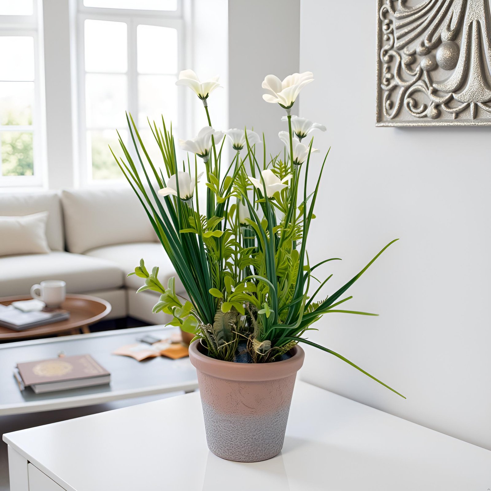 The arrangement comes pre-set in a modern, durable pot that complements various interior styles—be it minimalist, rustic, boho, or contemporary. The pot is crafted from lightweight yet sturdy material and is available in a range of neutral or accent tones to suit your decor preferences.