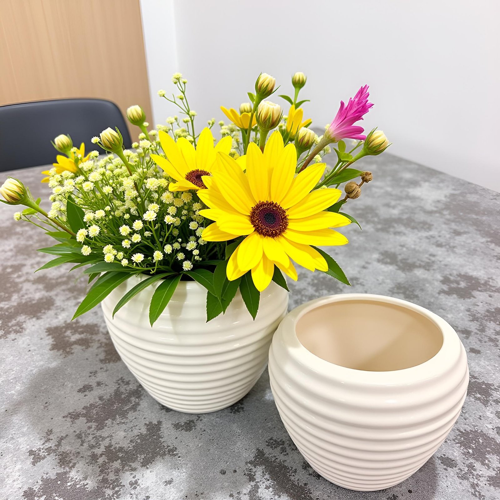 This vase’s timeless design makes it suitable for various settings, including living rooms, dining areas, and office spaces. Its neutral color palette complements a wide range of interior styles, making it a versatile piece that enhances any decor scheme.