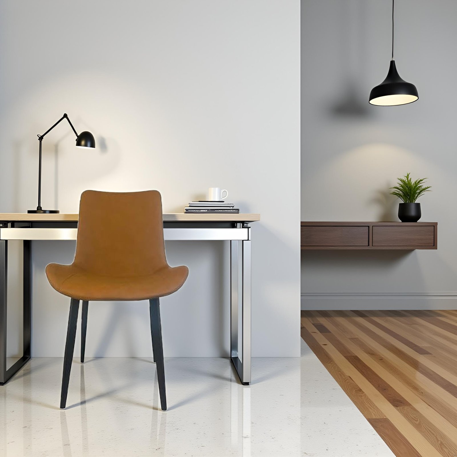 Upgrade your seating with this sleek brown Dining chair, featuring a comfortable brown cushion for added support. Crafted with high-quality material, the chair offers a stylish leather-like appearance that’s easy to clean and maintain. Its sturdy metal frame is supported by four durable legs, providing stability and long-lasting performance. Ideal for both home and office use, this chair combines modern aesthetics with practical functionality.