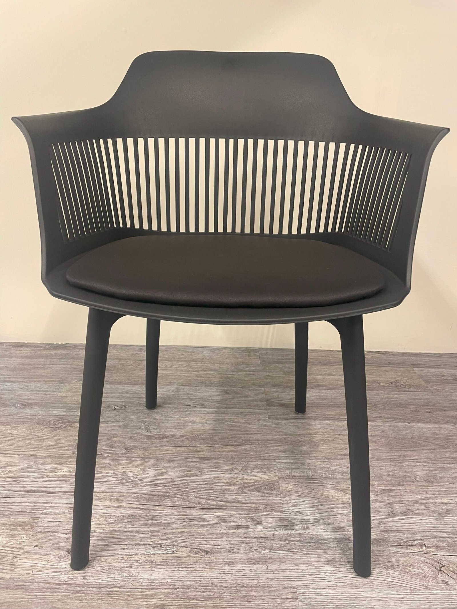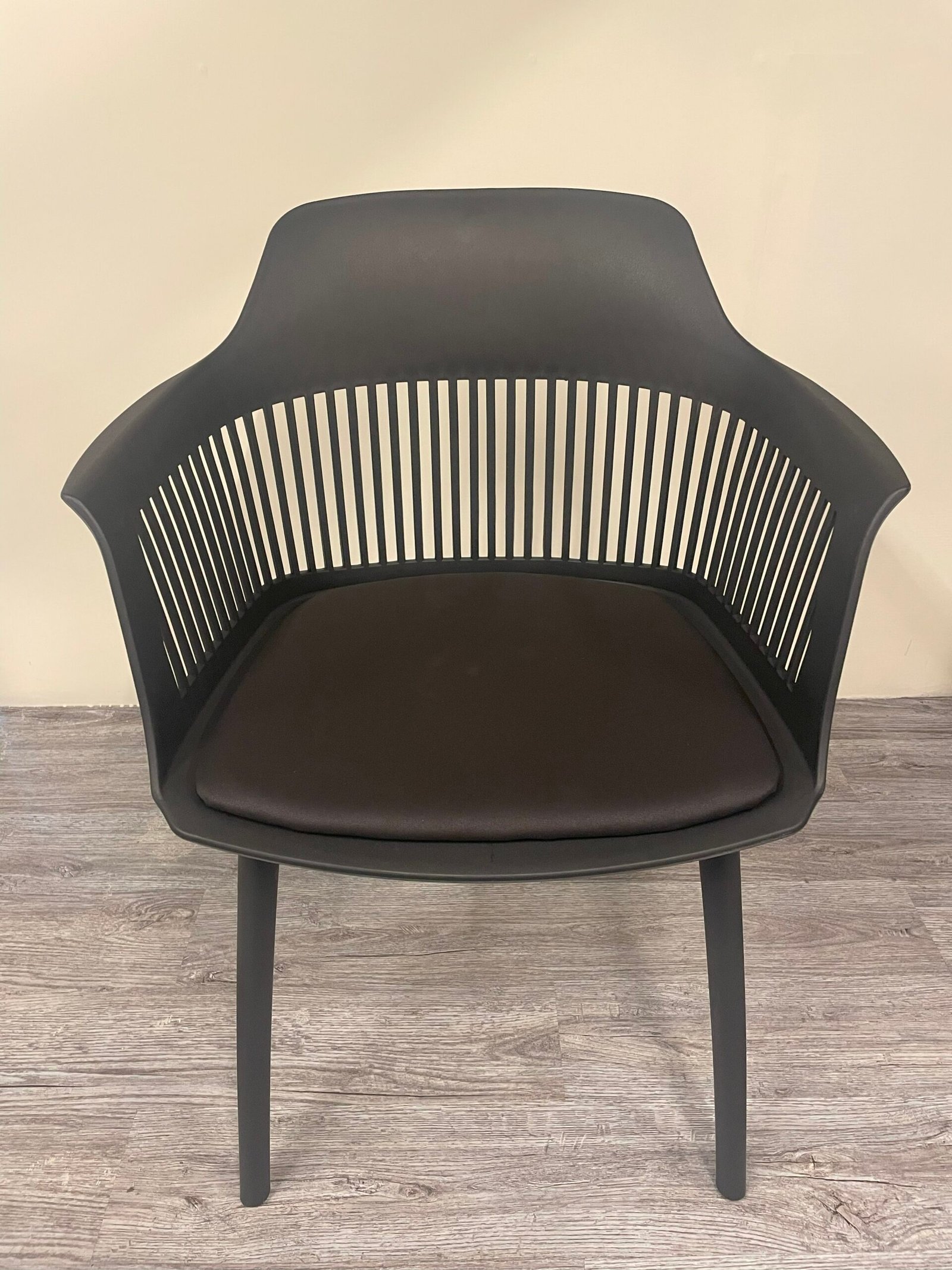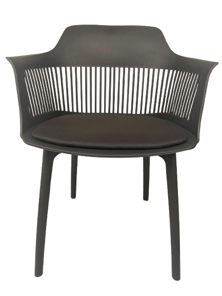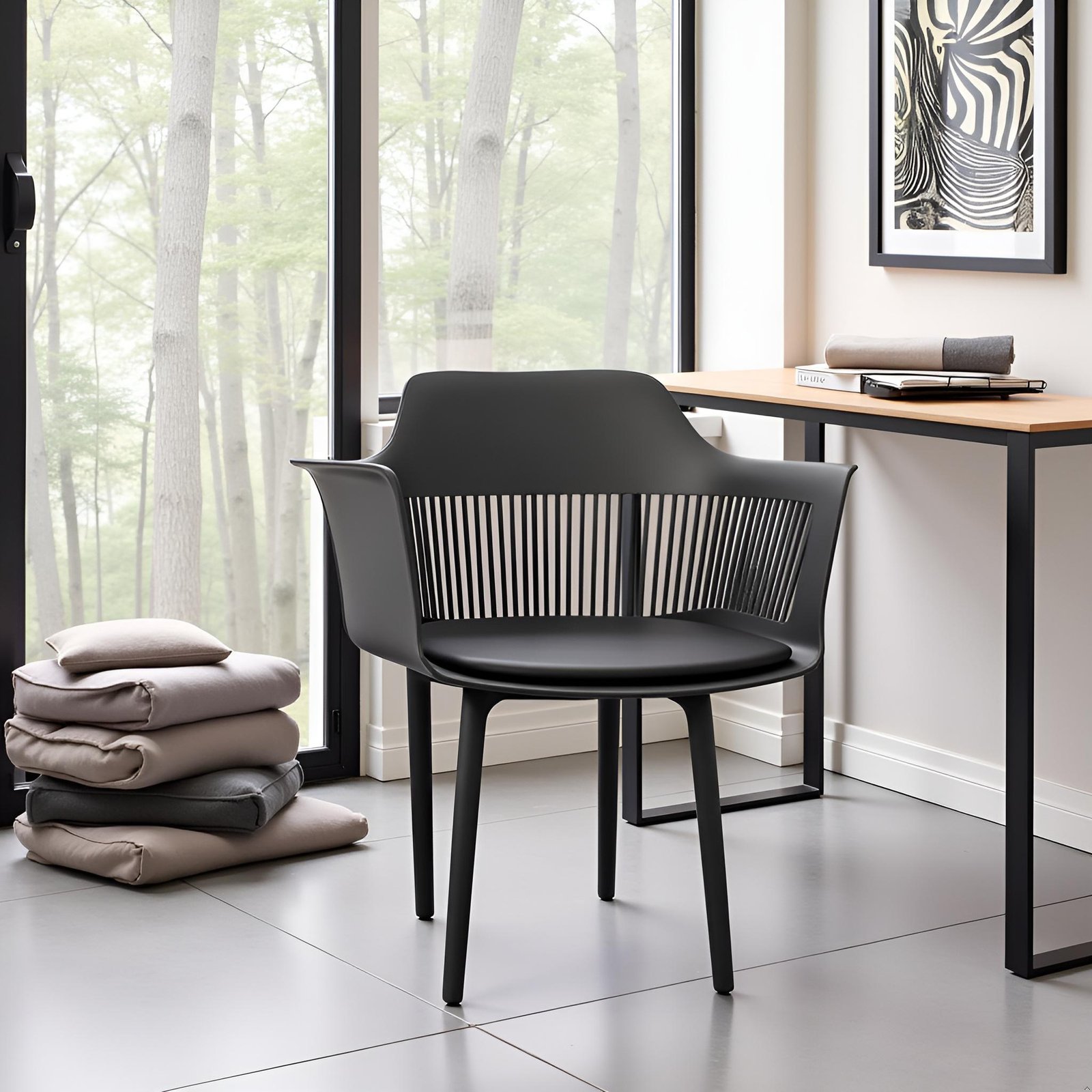 Elevate your interiors with this contemporary seating Indoor/Outdoor chair, designed to seamlessly blend aesthetics and functionality. Crafted from durable materials, each chair features a distinctive hollow backrest formed by adjacent longitudinal lines, adding a touch of modern elegance to any environment.This sleek Black chair combines durability, comfort, and style, making it an ideal addition to any modern living space.