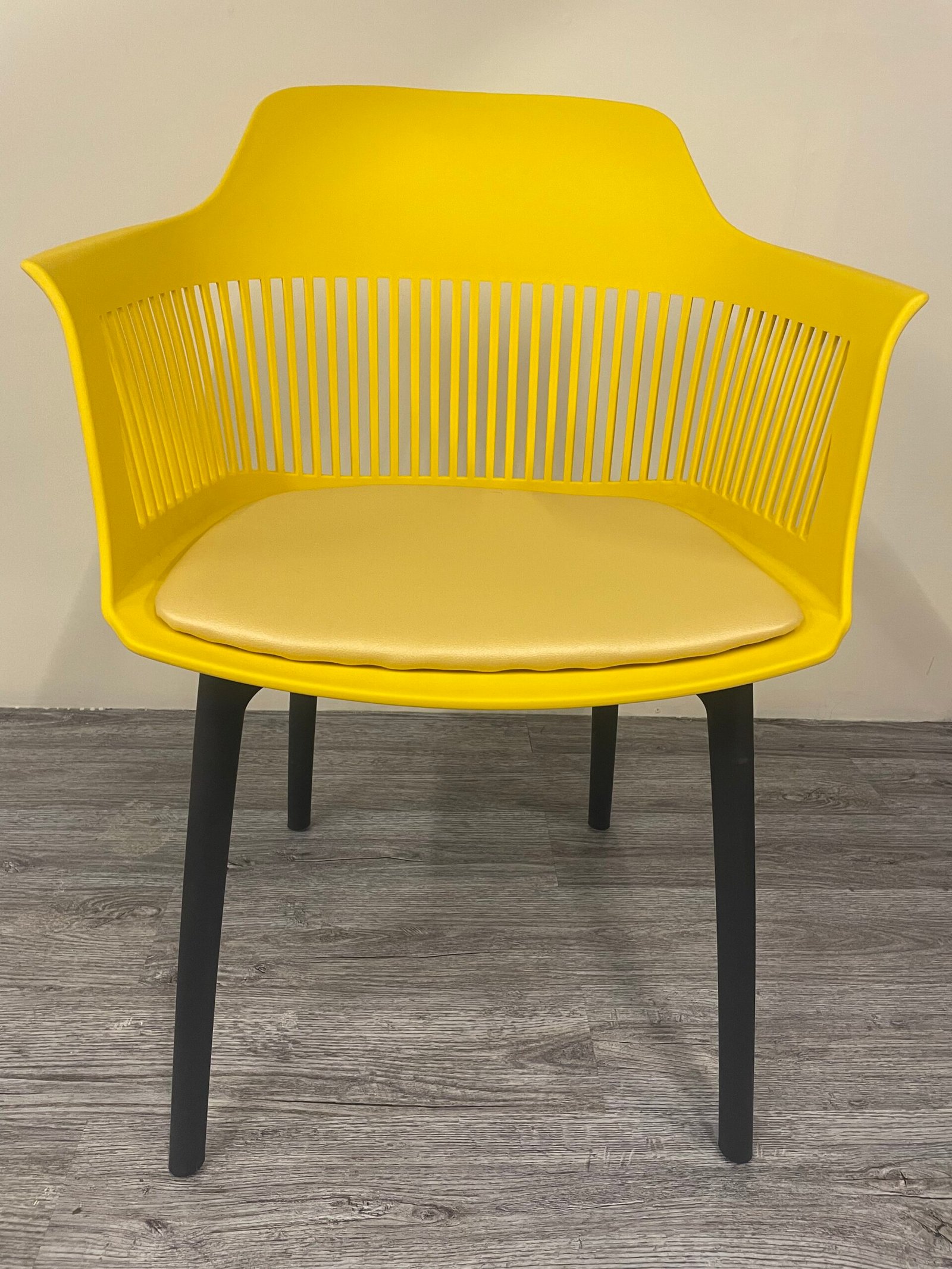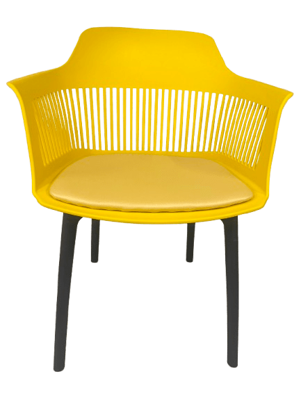 Elevate your interiors with this contemporary seating Indoor/Outdoor chair, designed to seamlessly blend aesthetics and functionality. Crafted from durable materials, each chair features a distinctive hollow backrest formed by adjacent longitudinal lines, adding a touch of modern elegance to any environment.This sleek Yellow chair combines durability, comfort, and style, making it an ideal addition to any modern living space.