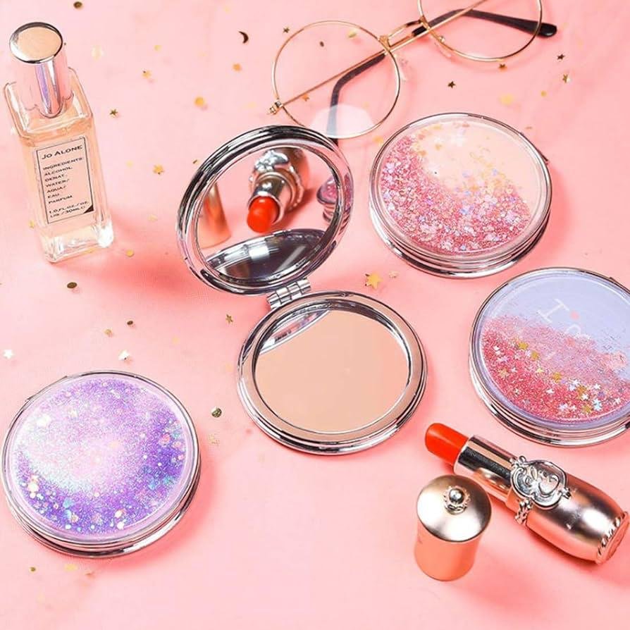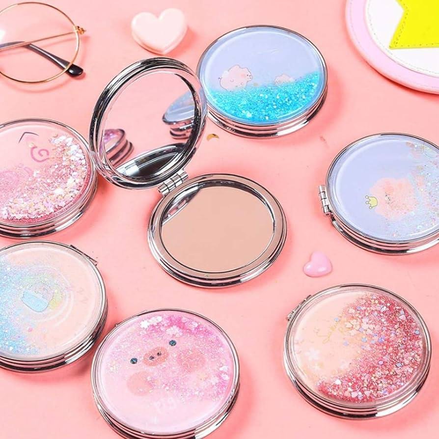 This compact purse mirror is crafted from premium plastic and  topped with a puffy glittering coat, offering both elegance and durability. When you hold it, you will appreciate its substantial weight and refined texture. The mirror features a high-quality finish, meticulous craftsmanship, and clear reflections, distinguishing it from others on the market.