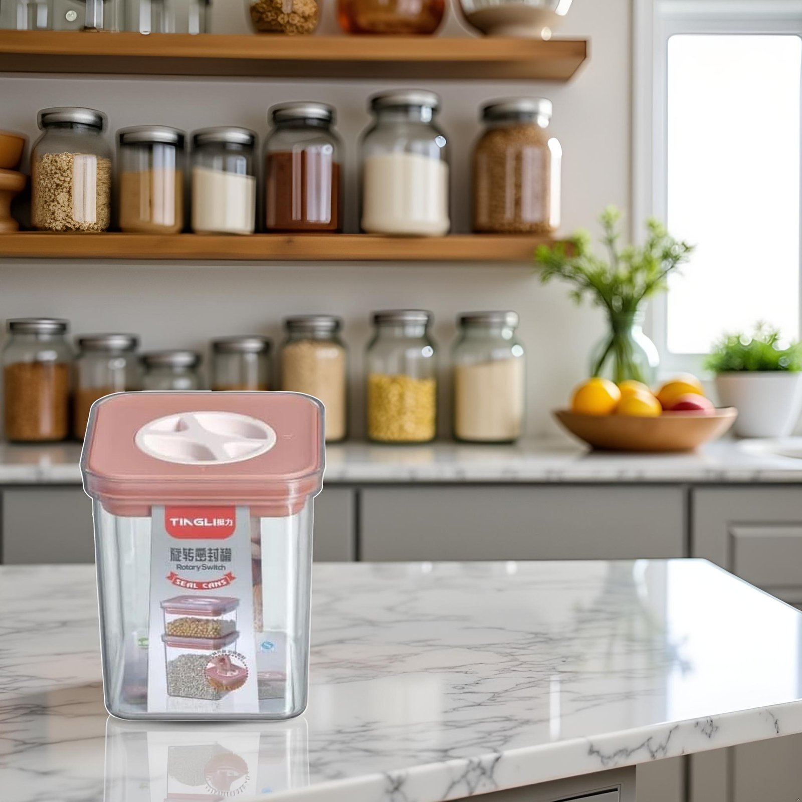 Airtight Seal: Container is designed with a 100% food graded premium range of plastic that effectively preserves the freshness and quality of the food stored within for extended periods. This seal prevents air and moisture from infiltrating the containers, ensuring that your cereals, flour, snacks, nuts, beans, sugar, coffee, tea, dry fruits, and other items stay fresh and flavorful.